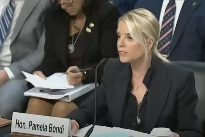 Yesterday, Bondi testified before the Senate Judiciary Committee. Several senators came prepared with questions. They left the hearing without answers. Bondi refused to answer questions about the Epstein files, the bombing of suspected Venezuelan drug boats, Tom Homan’s alleged acceptance of a $50,000 bribe, the deployment of the National Guard in several cities, and the firings of career prosecutors who disagreed with Trump's policies on legal grounds. She also launched personal attacks against several Senators, all of them Democrats.
