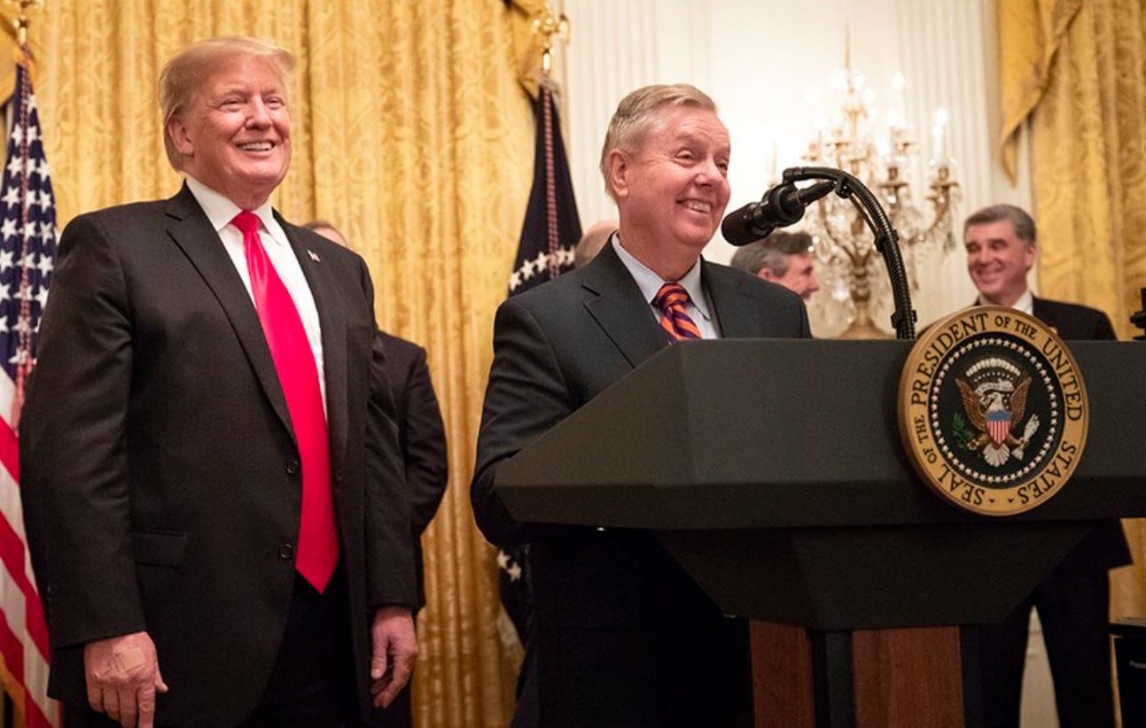 A normal person would have broken permanently with Trump, but Lindsey Graham is, well, Lindsey Graham. Throughout most of Trump’s first term in office, he regularly showed up at Trump events, with a brown nose.